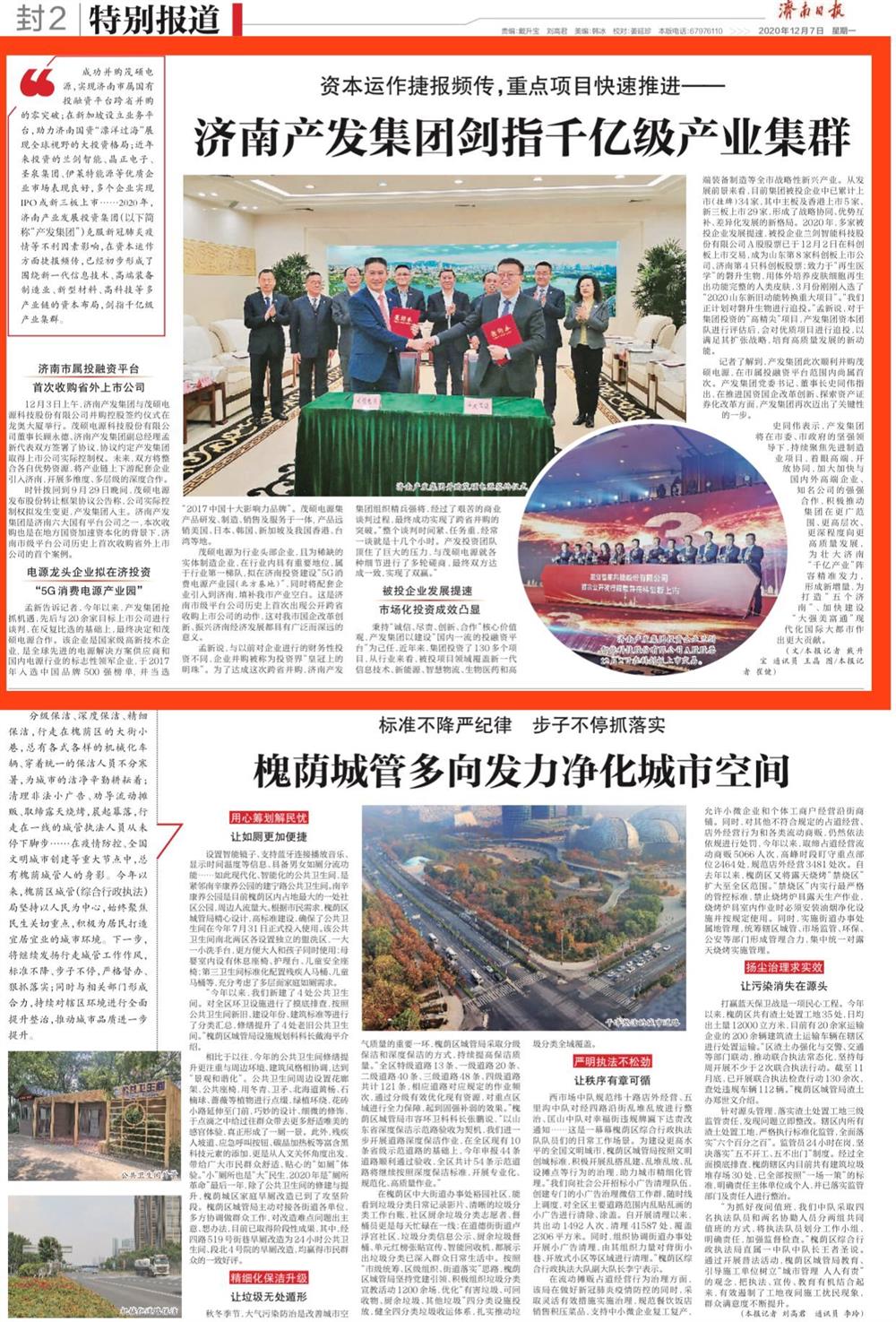 成功并购茂硕电源,实现济南市属国有投融资平台跨省并购的零突破;在新加坡设立业务平台,助力济南国资“漂洋过海”展现全球视野的大投资格局;近年来投资的兰剑智能、晶正电子、圣泉集团、伊莱特能源等优质企业市场表现良好,多个企业实现IPO或新三板上市……2020年,济南产业发展投资集团(以下简称“产发集团”)克服新冠肺炎疫情等不利因素影响,在资本运作方面捷报频传,已经初步形成了围绕新一代信息技术、高端装备制造业、新型材料、高科技等多产业链的资本布局,剑指千亿级产业集群。