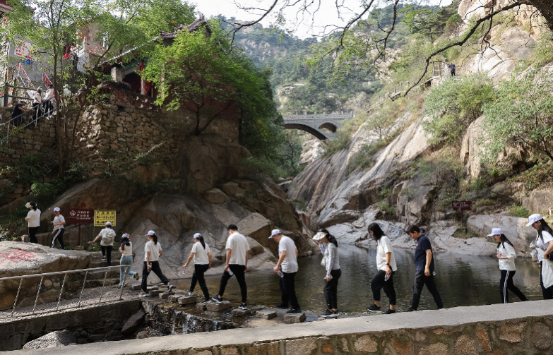 随后,集团干部职工前往九龙大峡谷开展登山徒步活动,以健康向上的方式,表达对祖国深深的祝福。伴随一声令响,大家从景区门口出发,情绪高昂、阔步前进,一路向终点行进。途中群山耸立,谷内水流潺潺,大家互相鼓励、结伴而行,一边交流工作心得,一边欣赏沿途美景,充分展现了集团干部职工昂扬向上、团结奋进的良好精神面貌,舒缓了繁忙工作带来的压力。